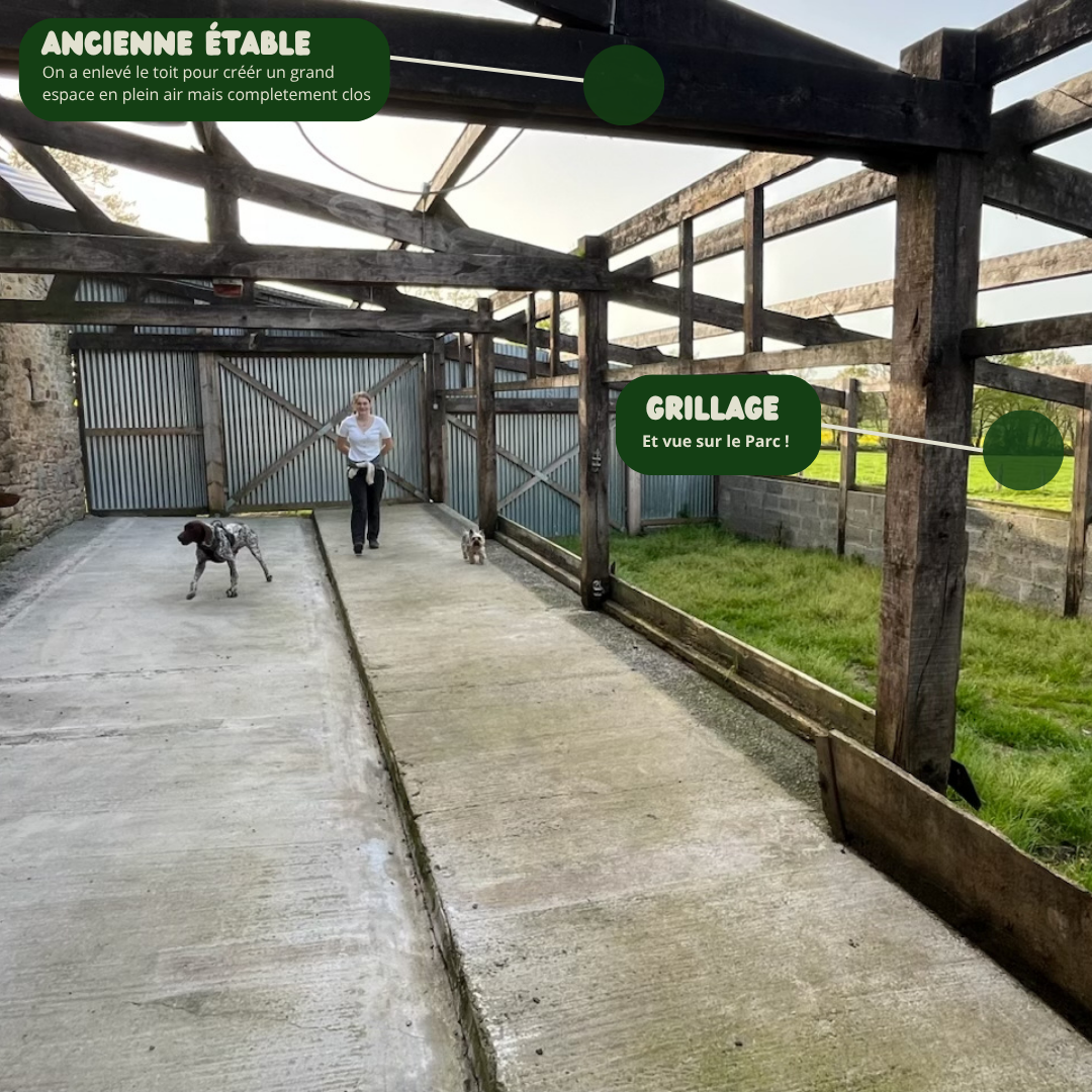 À Nivillac, vos chiens seront accueillis dans un cadre champêtre et familial, au cœur d’une ancienne ferme en rénovation. L’ancienne étable a été transformée en un petit chenil confortable, prévu pour accueillir jusqu’à 8 chiens – un nombre volontairement limité pour conserver une ambiance calme et chaleureuse. J’habiterai juste à côté, dans la maison attenante, afin d’être présente en permanence. Le chenil est composé de quatre box de 10-12 m², chauffés en hiver, dans lesquels les chiens seront répartis en fonction de leurs affinités (ou mésententes !). Chaque chien aura son propre tapis moelleux pour se reposer en toute tranquillité.
